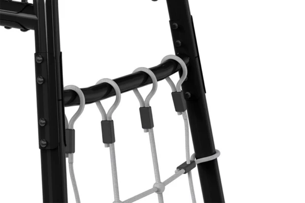 | Inclusief accessoires | Oefenstang, houten turnringen, trapeze, schommel en klimnet |