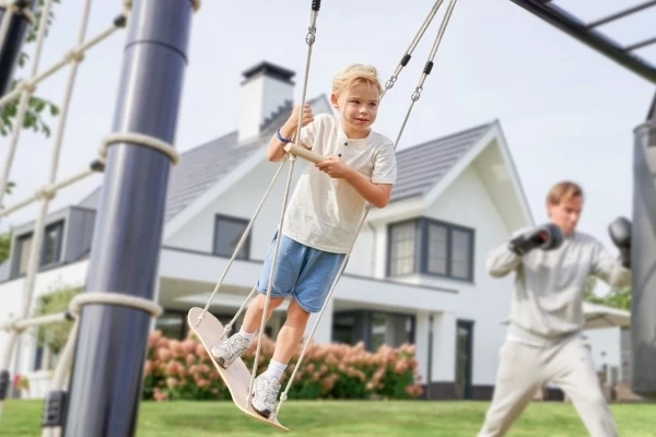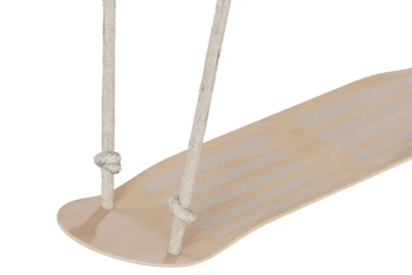 Verrijk je PlayFit speeltoestel met deze skateboard schommel! Gemaakt van esdoornhout en afgewerkt met een PU-coating. De stevige Polyhemp-touwen zijn slijtvast en weerbestendig, en kunnen eenvoudig tussen 150-200 cm worden versteld. Het formaat van de schommel is 78x20,5 cm en de maximale draagkracht is 100 kg. Dankzij de roestvrijstalen karabijnen is de schommel binnen enkele seconden stevig en veilig aan een PlayFit schommel- of monkeybarframe te bevestigen. Zo ontstaat een wereld vol speelplezier en fantasie, direct in de achtertuin.